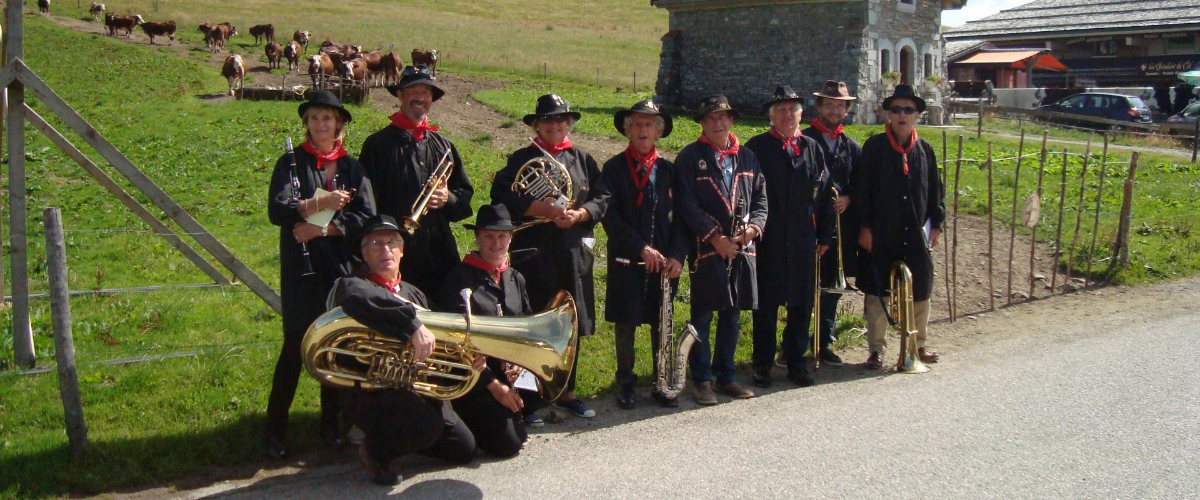 Les commerçants de Megève demandent à l’Harmonie d’animer la fête du 6 Septembre 1970. La musique est à cette période en vacance. Les anciens décident donc de produire un groupe d’une quinzaine de musiciens disponibles. Et c’est parti….Pour cette première sortie nous sommes habillés d’un costume paysan loué à Sallanches pour l’occasion : pantalon foncé, blouse bleue et chapeau de paille.